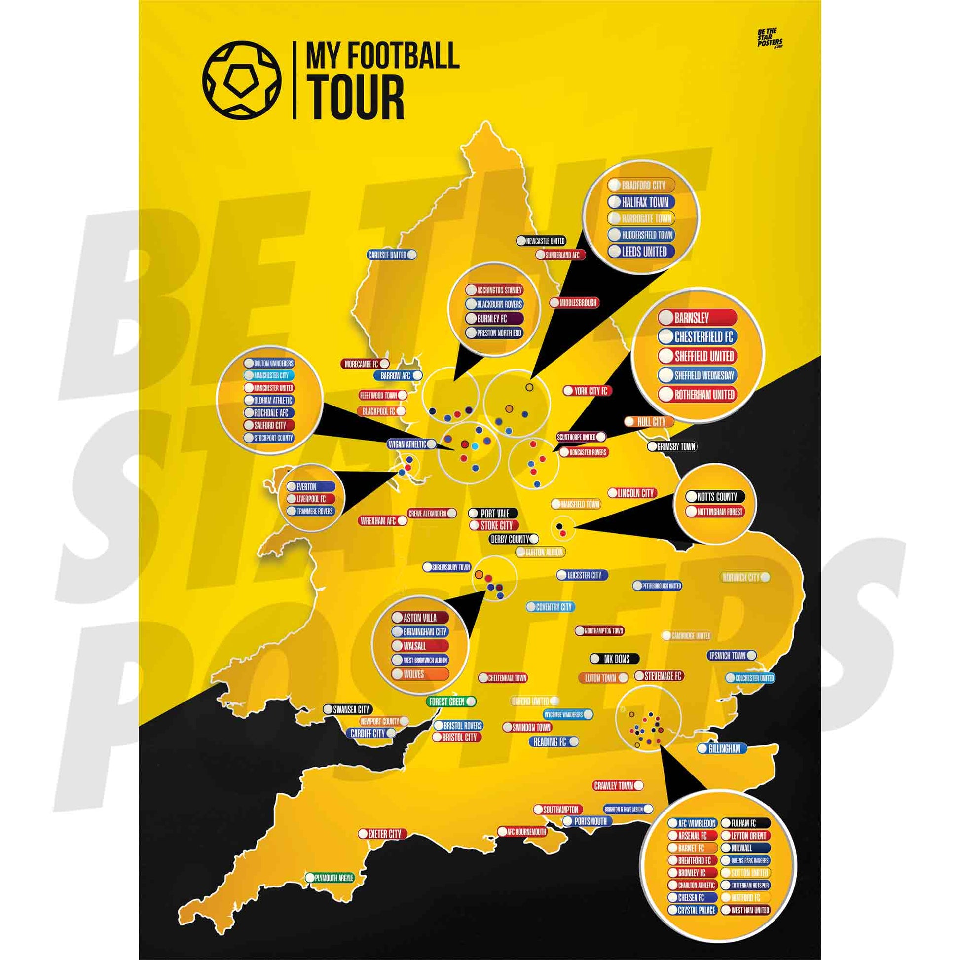 Select your favourite teams colours and tick off each of the 92 clubs you have visited as you complete the football tour challenge.